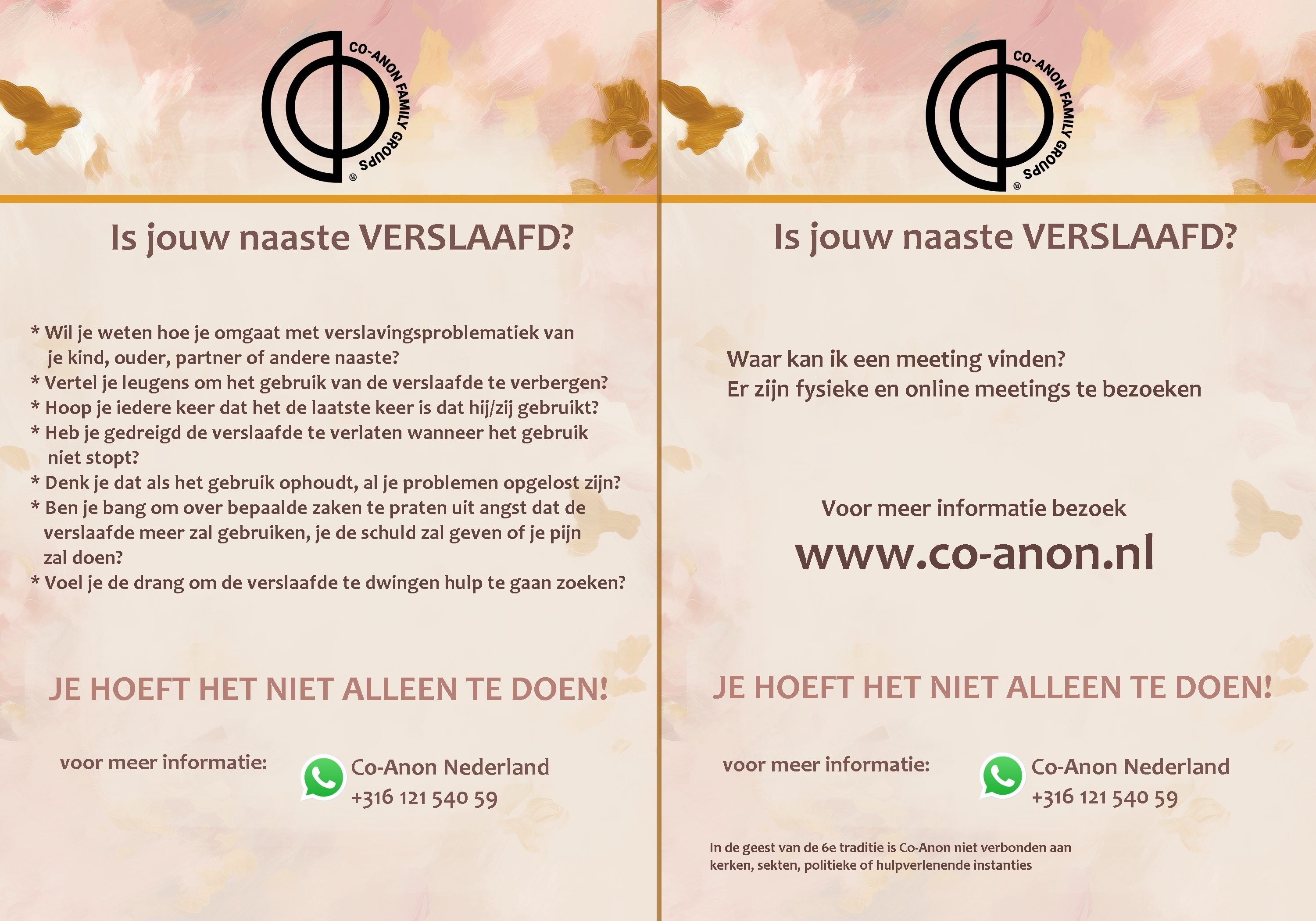 Het doel van deze pagina is om downloadbare hulpmiddelen, sjablonen en documenten te verzamelen die je kunnen helpen om onze boodschap van hoop uit te dragen in jouw regio.